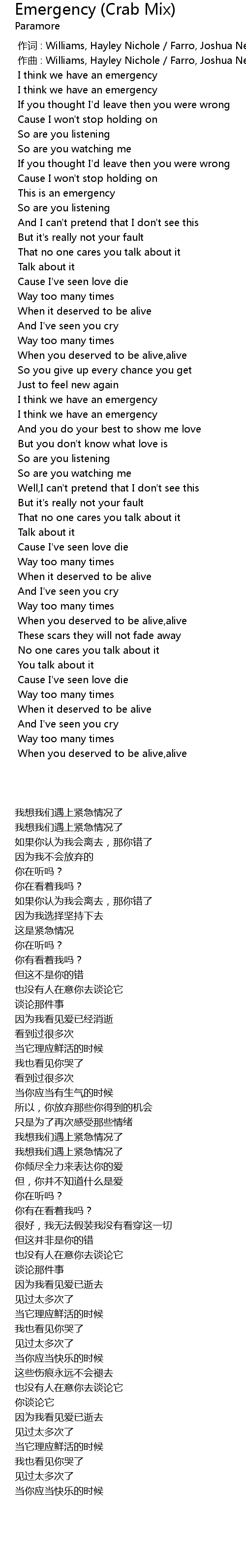 | [00:01.000] | zuo qu : Williams, Hayley Nichole Farro, Joshua Neil |