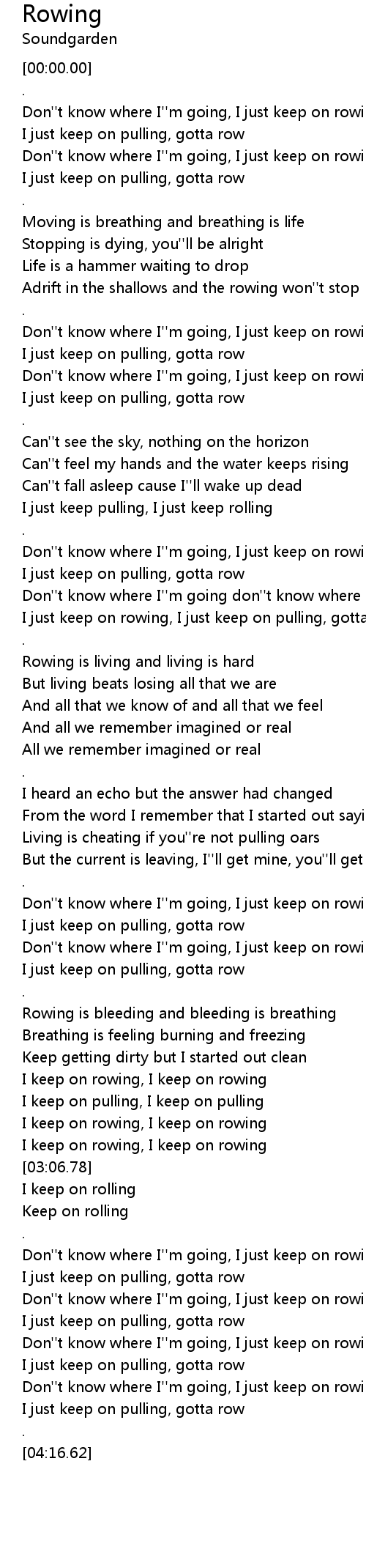 I just keep on rowing, I just keep on pulling, gotta row |