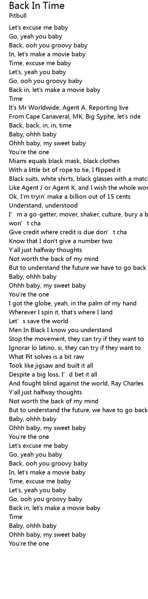 | Song | Back In Time |