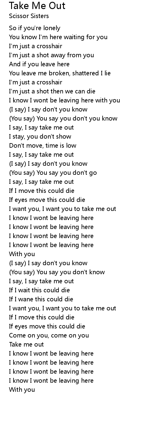 I say, I say take me out |