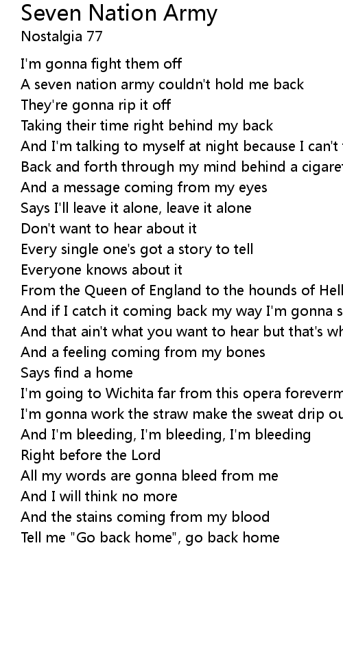A seven nation army couldn't hold me back |