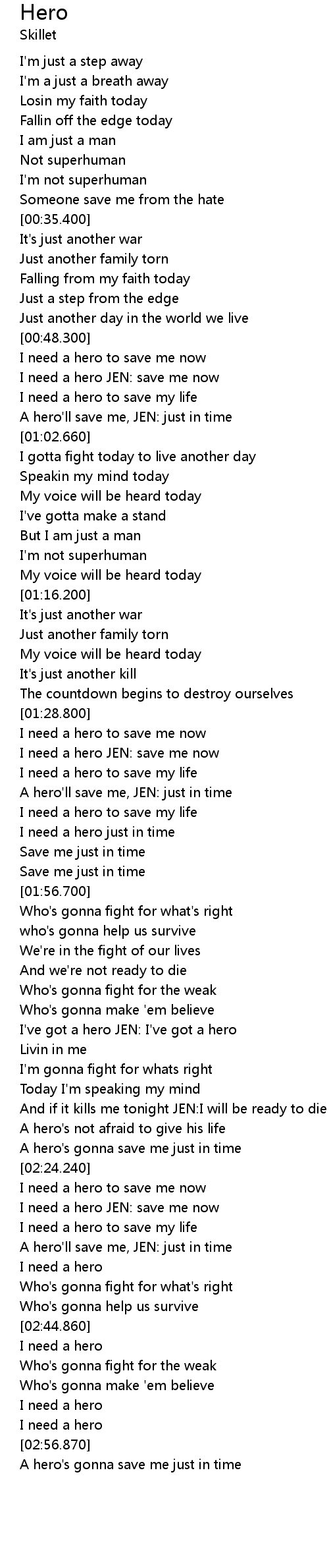 I need a hero just in time |