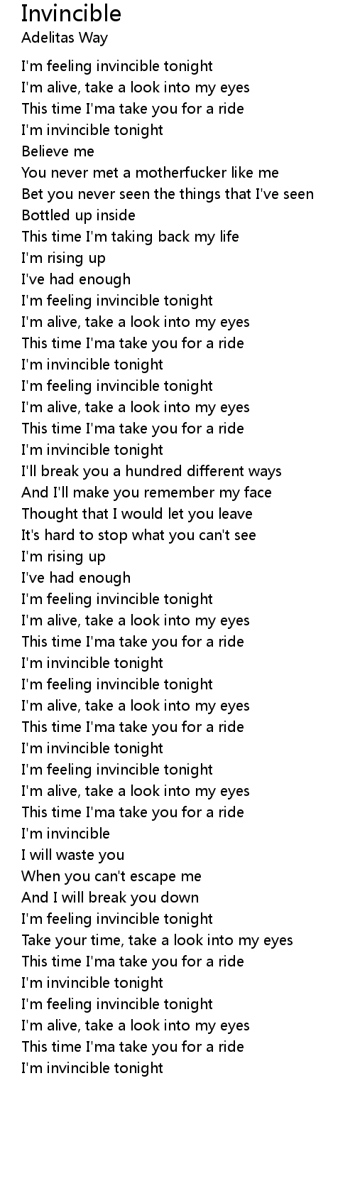 I'm feeling invincible tonight |