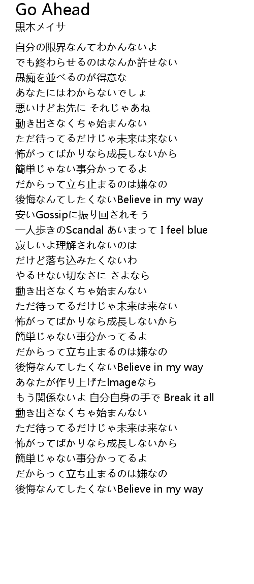 | 後悔なんてしたくないBelieve in my way |