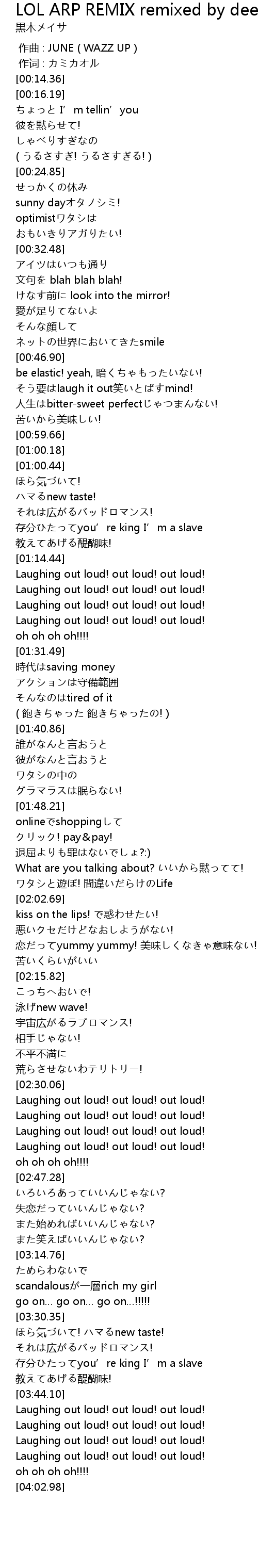 | [02:30.66] | Laughing out loud! out loud! out loud! |