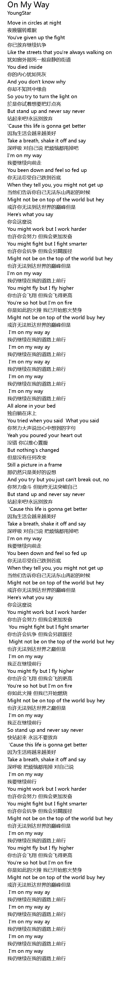 | wo reng ji xu zai wo de dao lu shang qian xing | |