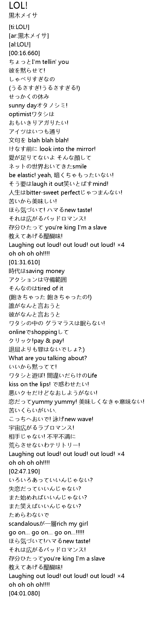 | [02:31.560] | Laughing out loud! out loud! out loud! 4 |