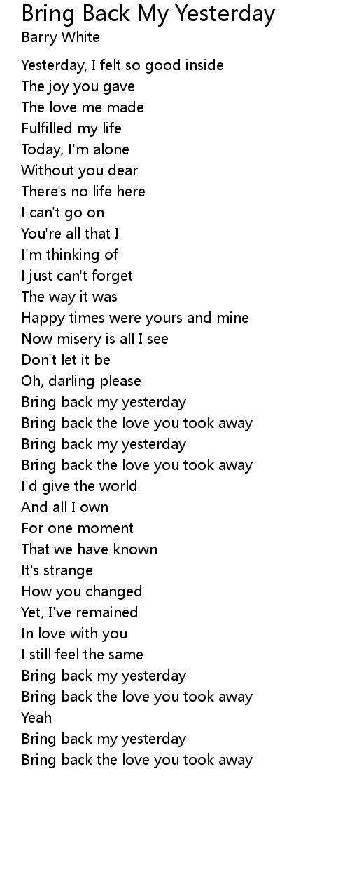 Bring back my yesterday |