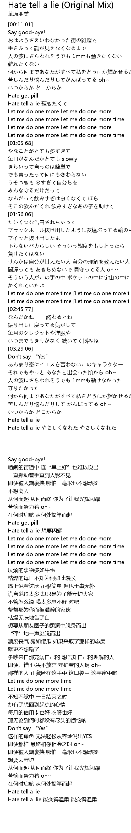 | [04:04.52] | Hate tell a lie やさしくなれた やさしくなれた |