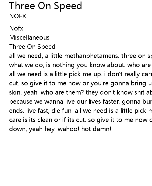 | all we need, a little methanphetamens. three on speed. a little subversality. | |