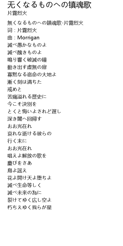 | [00:00.00] | 無くなるものへの鎮魂歌-片霧烈火 |