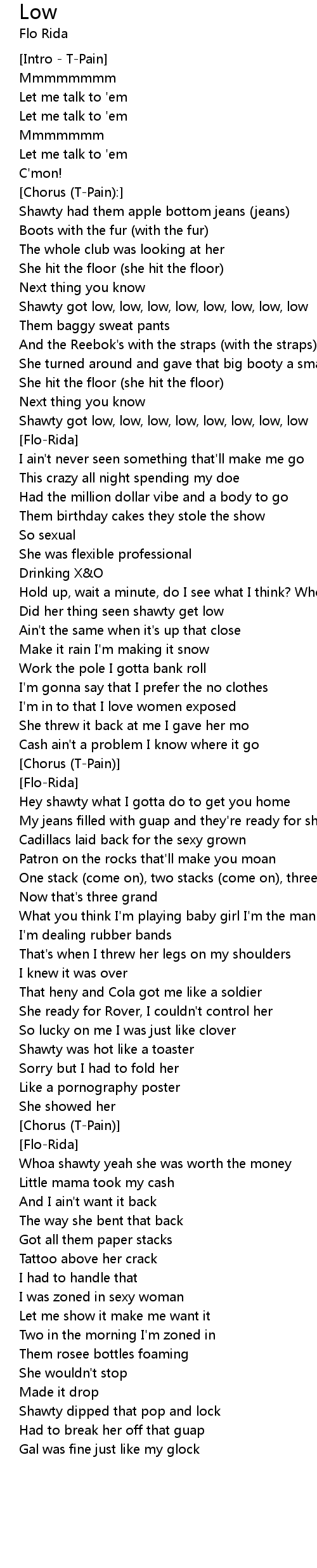 Shawty got low, low, low, low, low, low, low, low |