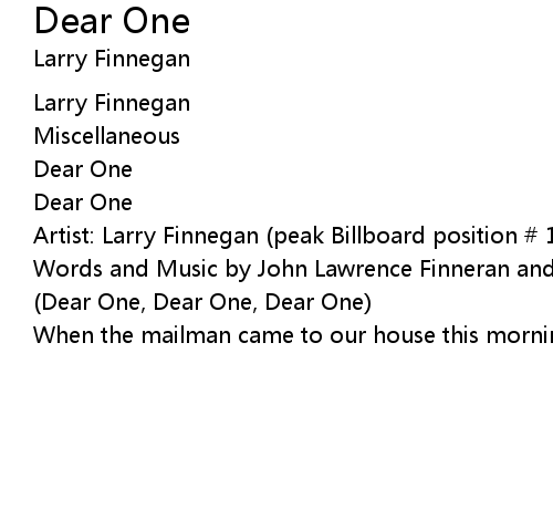 | Artist: Larry Finnegan (peak Billboard position # 11 in 1962 ) | |