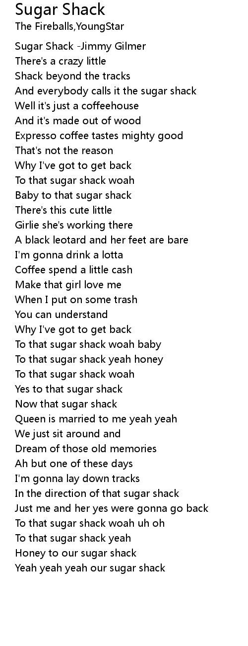 To that sugar shack woah baby |