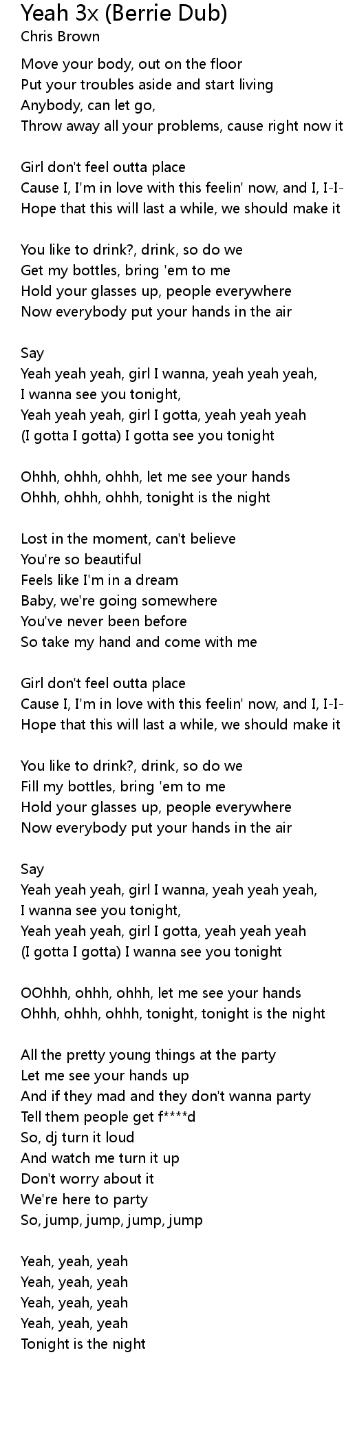 Yeah yeah yeah, girl I gotta, yeah yeah yeah