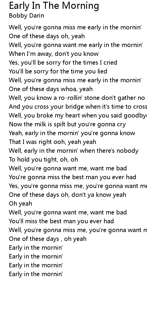 Well, you're gonna miss me early in the mornin' |