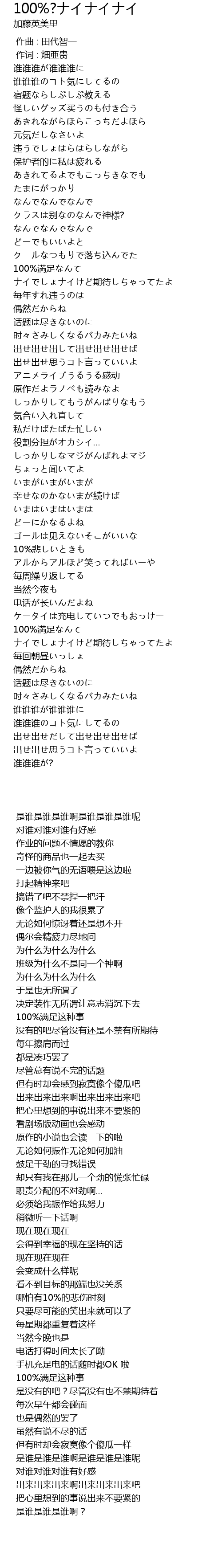 | Song | 100%?ナイナイナイ |