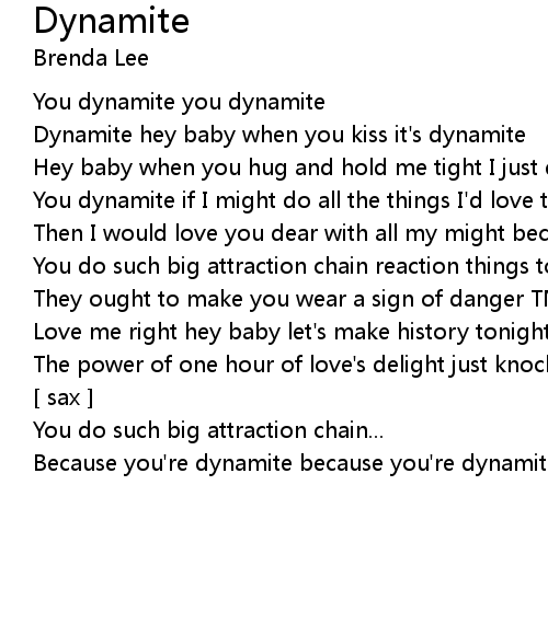 Hey baby when you hug and hold me tight I just explode like dynamite |
