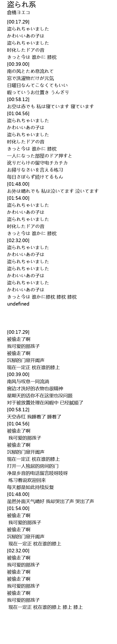 | [02:08.50] | きっと今は 谁かに 膝枕 |