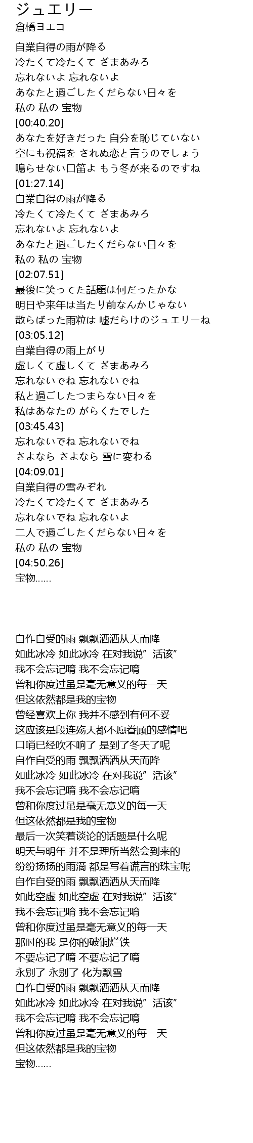 | [04:18.84] | 冷たくて冷たくて ざまあみろ |