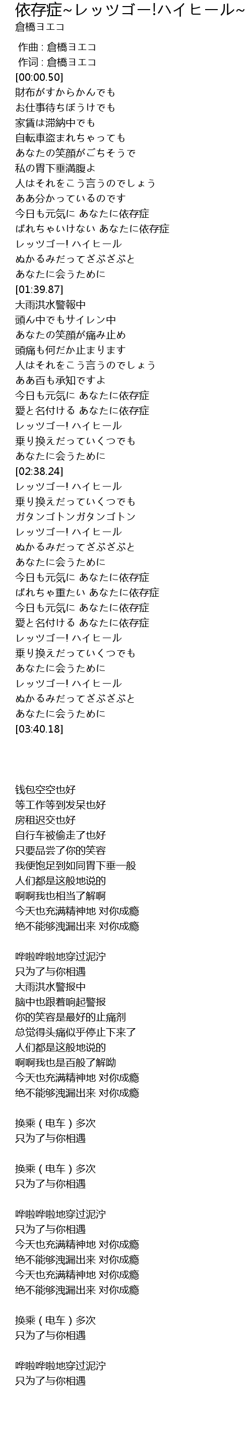 | [02:19.57] | 今日も元気に あなたに依存症 |
