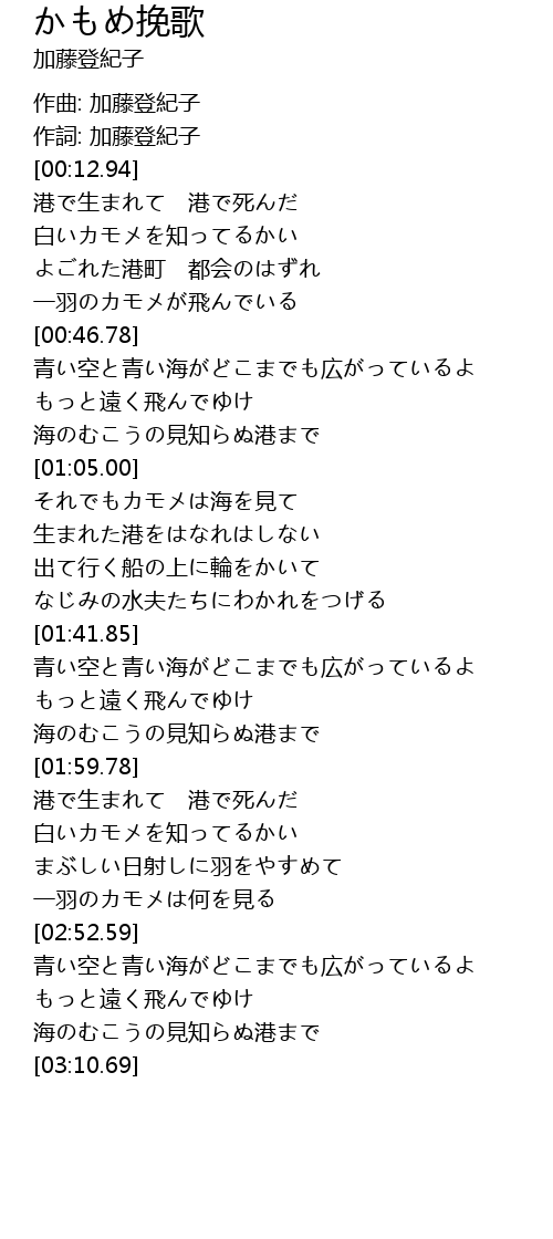 | [00:07.07] | 作詞: 加藤登紀子 |