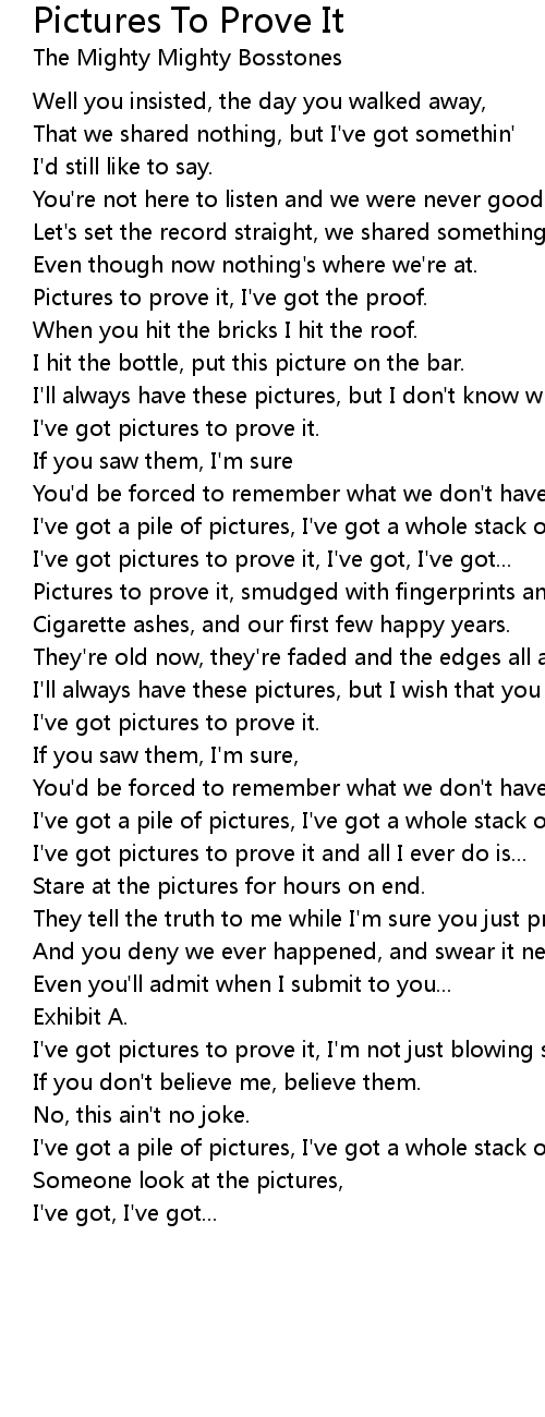 I've got a pile of pictures, I've got a whole stack of proof. |