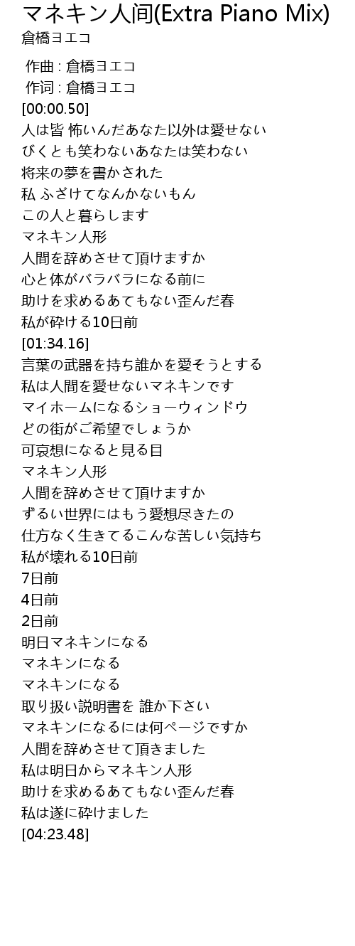 | [01:56.30] | 私は人間を愛せないマネキンです |