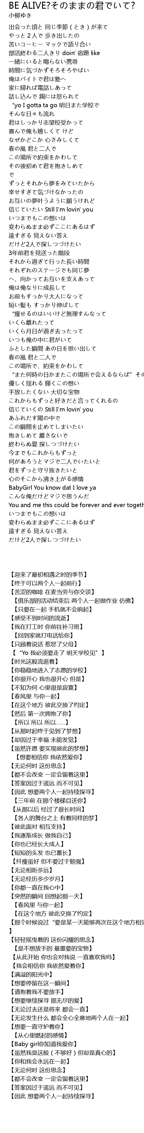 | Song | BE ALIVE?そのままの君でいて? |