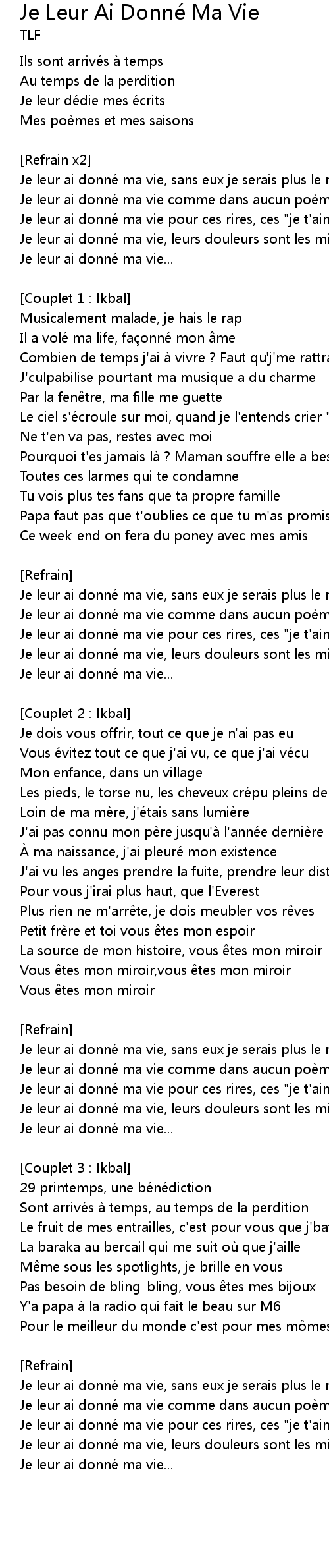 | Je leur ai donne ma vie comme dans aucun poe me | |