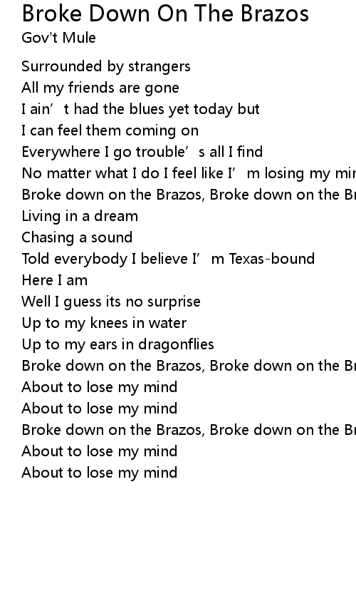 | Broke down on the Brazos, Broke down on the Brazos, Broke down on the Brazos | |
