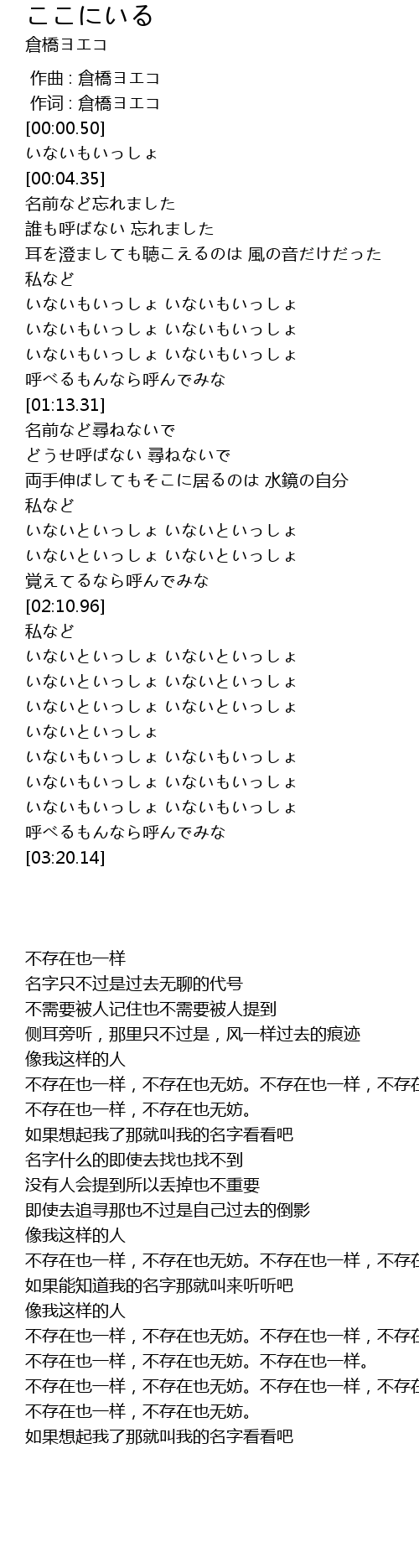 | [01:33.33] | どうせ呼ばない 尋ねないで |