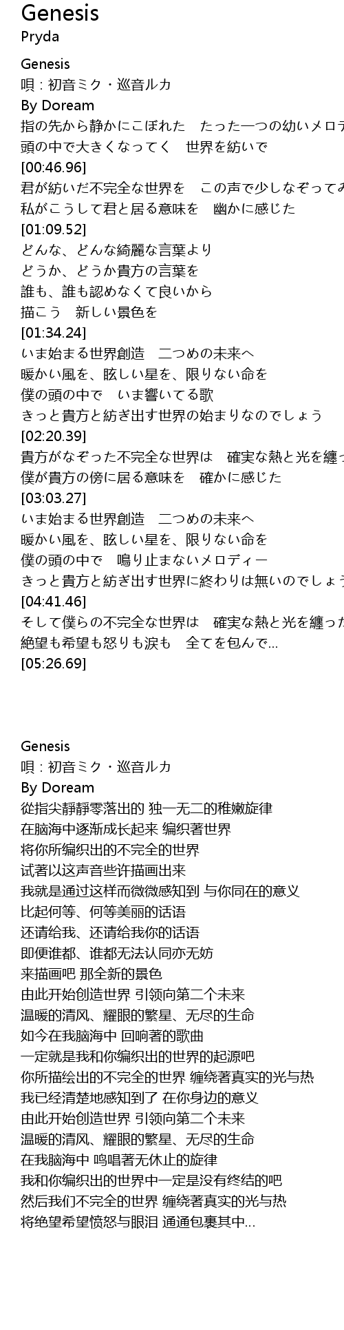 | [00:00.08] | Genesis |
