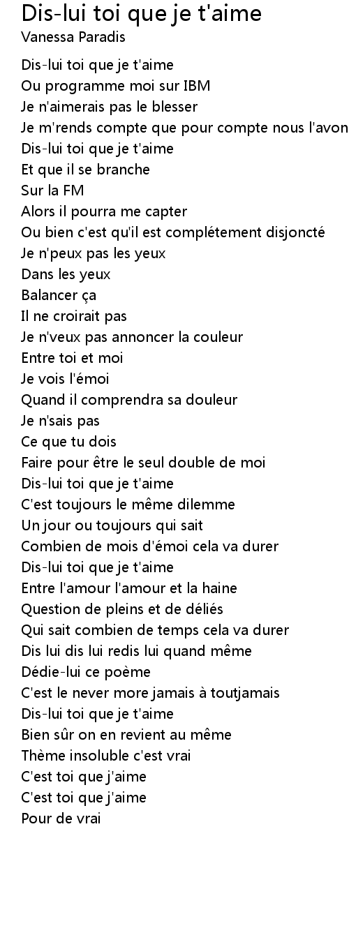 | Song | Dis-lui toi que je t'aime |