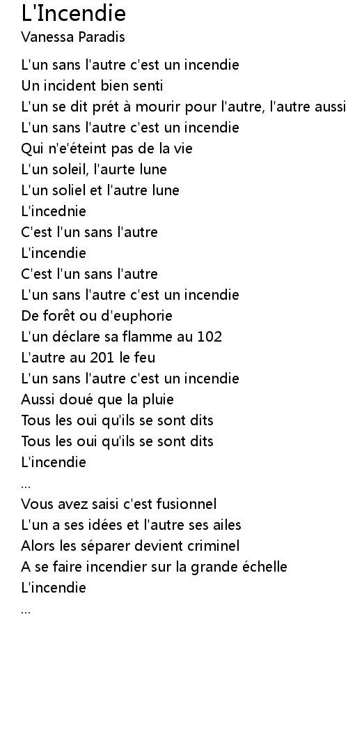 | Song | L'Incendie |