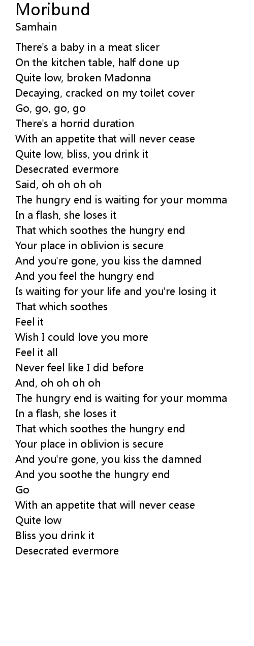 | The hungry end is waiting for your momma | |