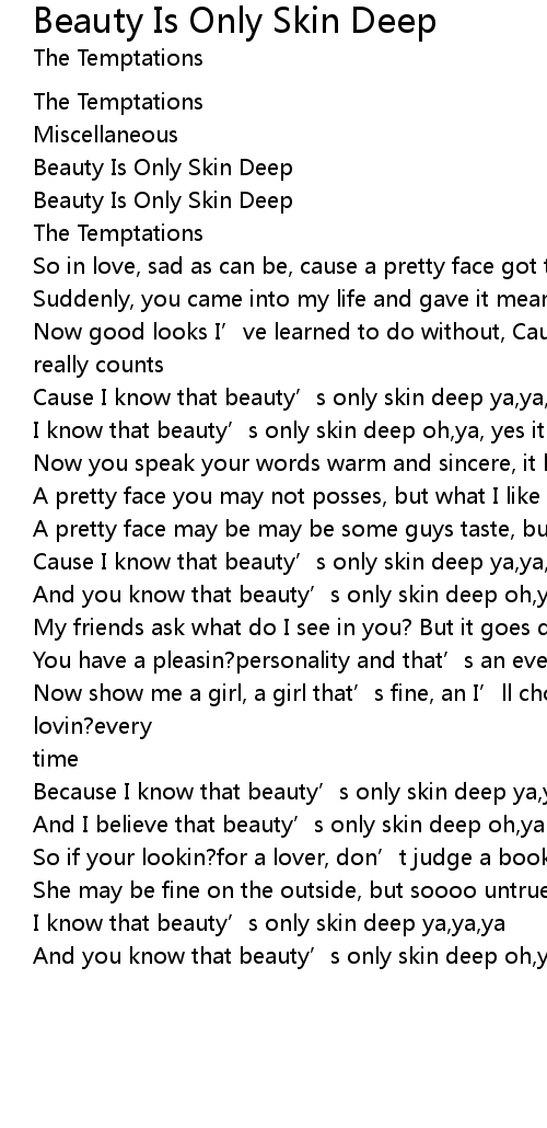 | I know that beauty’s only skin deep oh,ya, yes it is | |