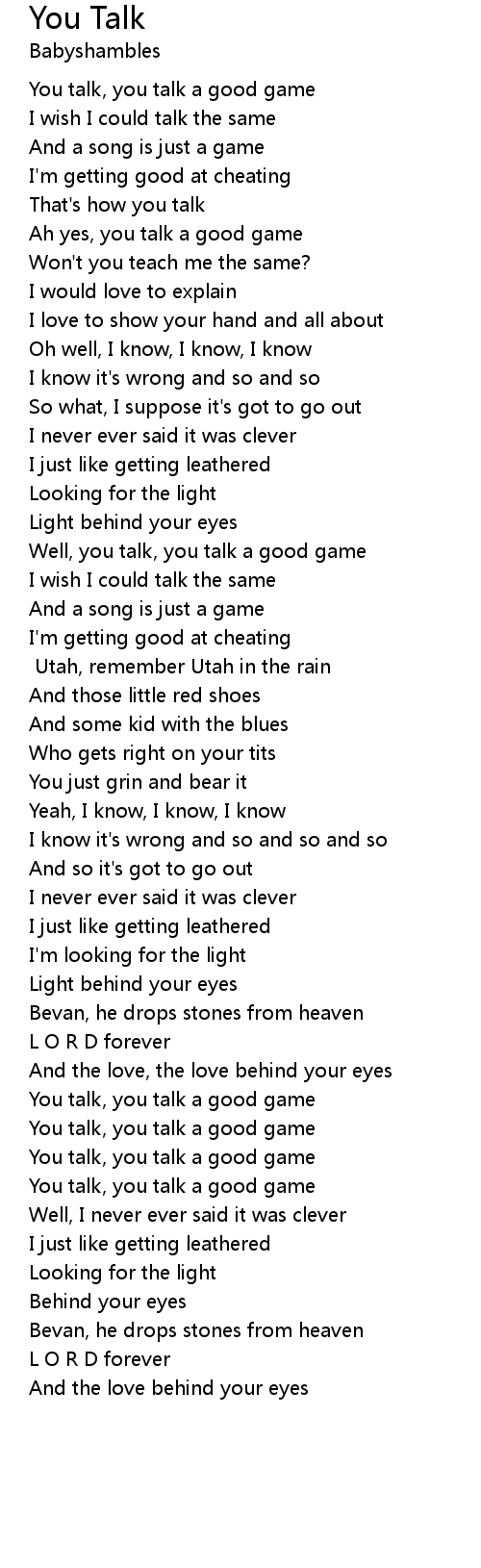 You talk, you talk a good game |