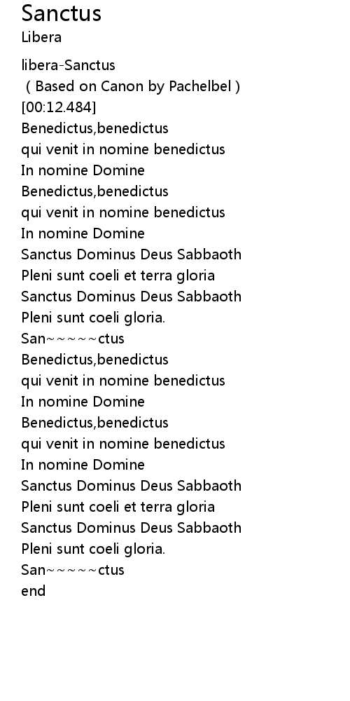 | [00:59.588] | Sanctus Dominus Deus Sabbaoth |