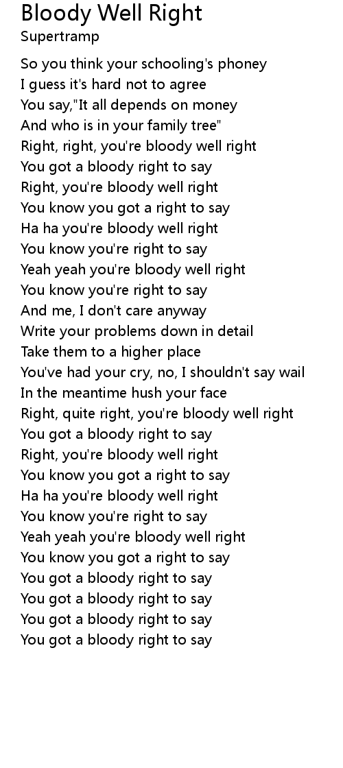You got a bloody right to say |