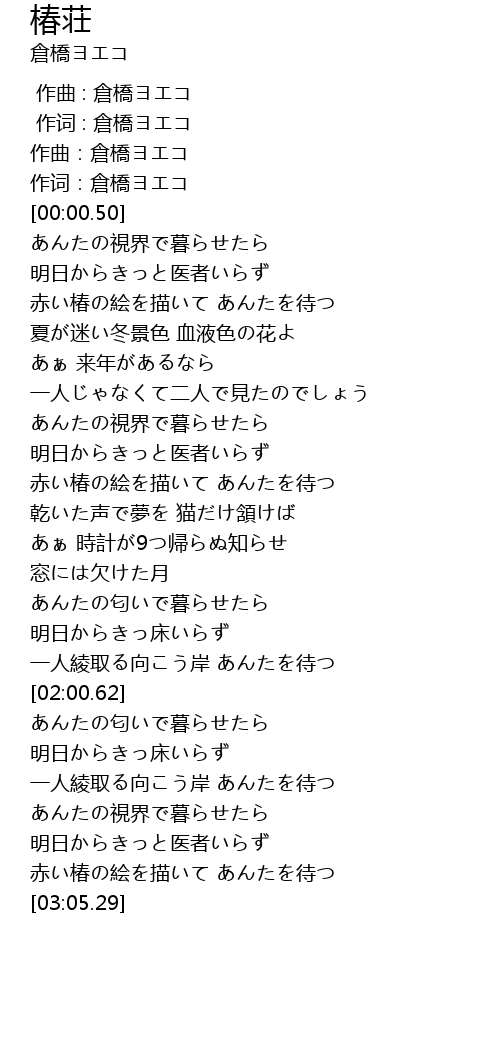 | [00:00.00] | 作曲:倉橋ヨエコ |