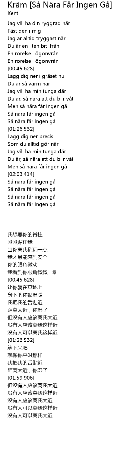 | [01:54.393] | Du r, s n ra att du blir v t |
