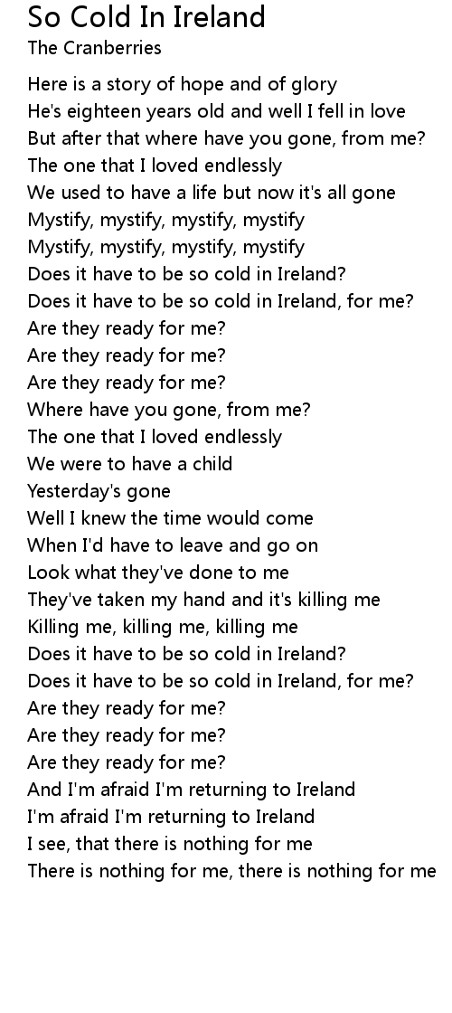 Does it have to be so cold in Ireland, for me? |