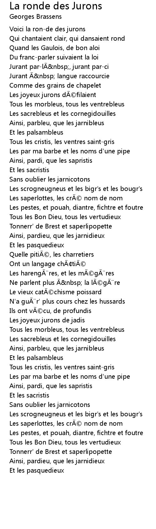 | Song | La ronde des Jurons |