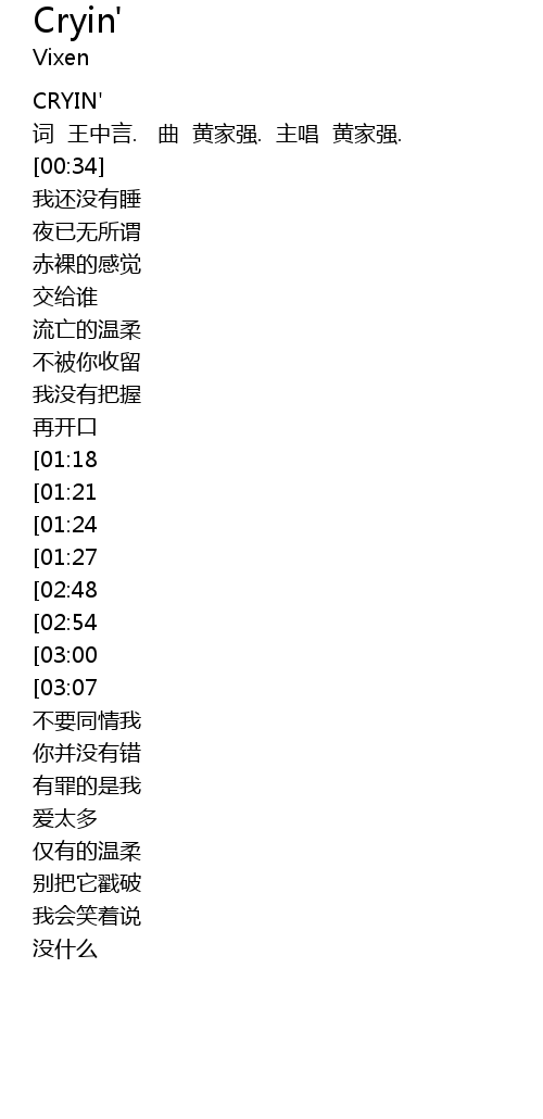 | [00:17] | 词 王中言. 曲 黄家强. 主唱 黄家强. |