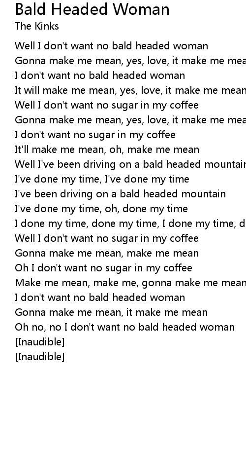 Well I don't want no bald headed woman |
