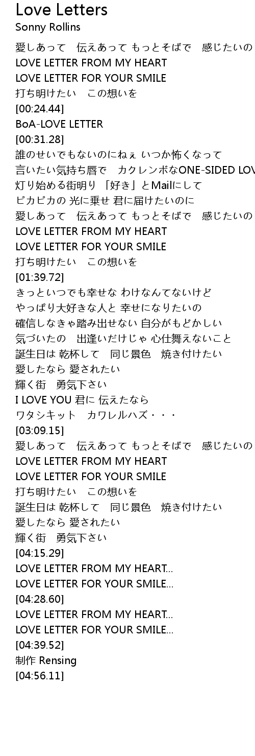 | [04:36.60] | LOVE LETTER FOR YOUR SMILE... |