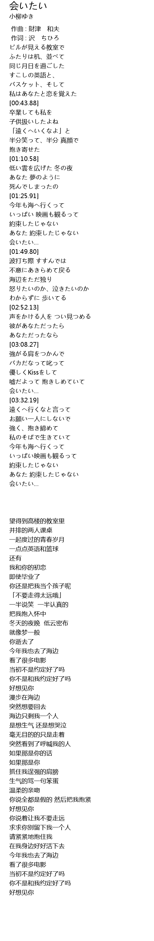 | [01:44.44] | 会いたい… |
