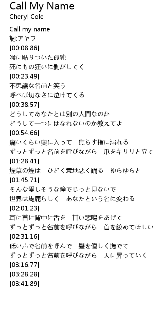 | [02:32.56] | 低い声で名前を呼んで 髪を優しく撫でて |