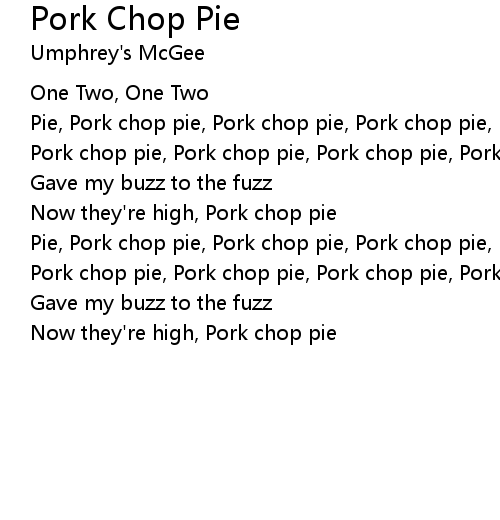 | Pork chop pie, Pork chop pie, Pork chop pie, Pork chop pie, | |